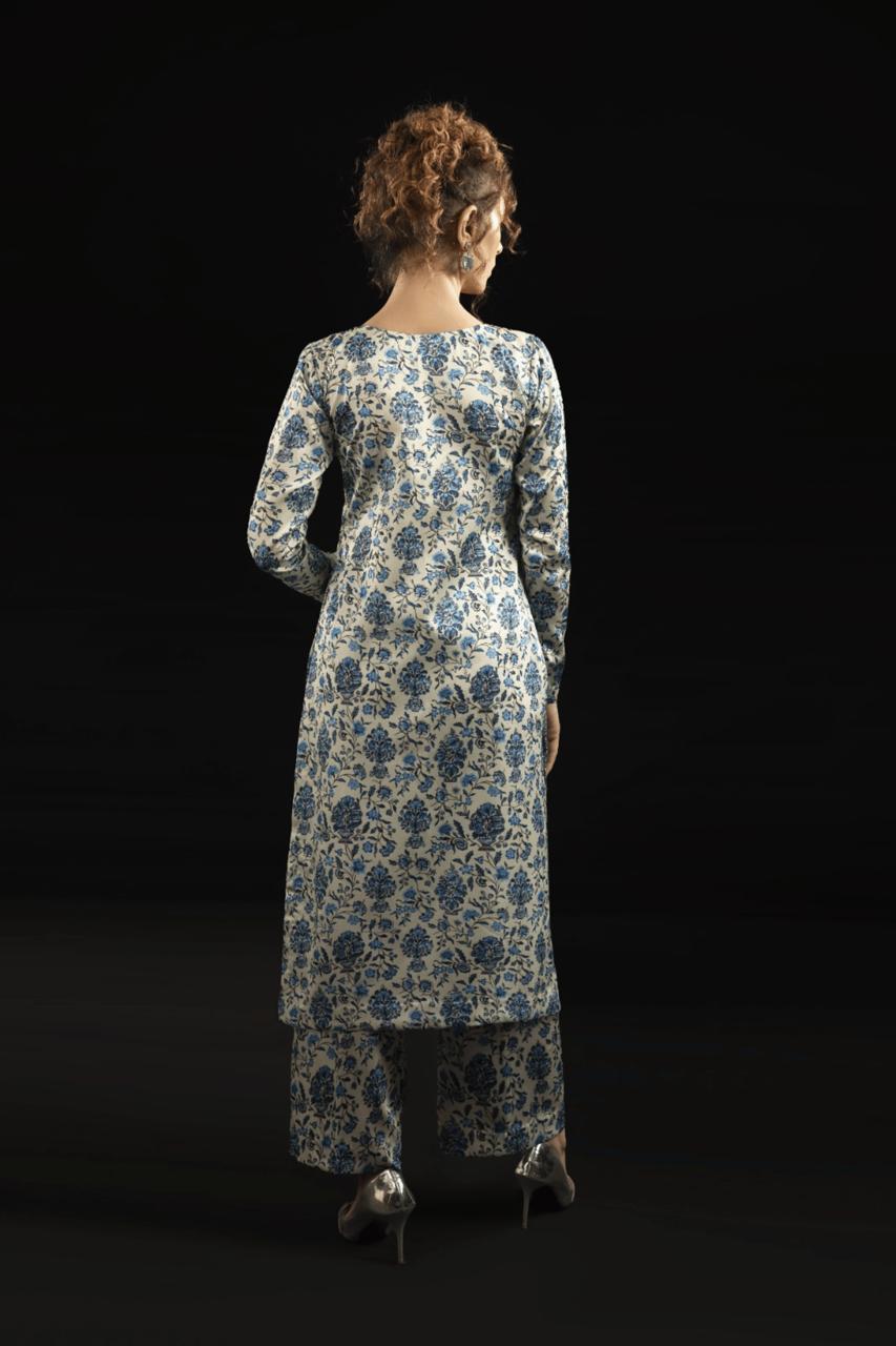 Elevate your everyday elegance with this timeless blue porcelain floral kurta set, designed to blend classic charm with modern comfort.